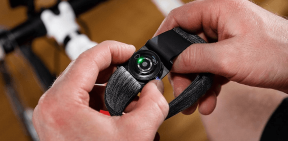 Humidifiez les capteurs de la ceinture cardio avec un peu d’eau et placez-la sur votre poitrine. Appuyez sur le bouton de démarrage pour qu’elle se mette en marche, et lancez-vous !