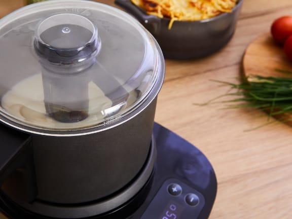 Réaliser une bonne sauce n’est pas donné à tout le monde. Erreur de température, oubli de fouetter pendant quelques secondes, temps de cuisson inadéquat : les sauces et fonds demandent une rigueur et une expertise irréprochable. Grâce au saucier Miogo, fini l’attente interminable devant son saucier : il mélange et chauffe automatiquement les ingrédients pour un résultat parfait. Son revêtement anti-adhésif évitera aussi toute déconvenue lors de la cuisson. A vous les sauces onctueuses, homogènes et cuites à la bonne température pour sublimer vos petits plats.