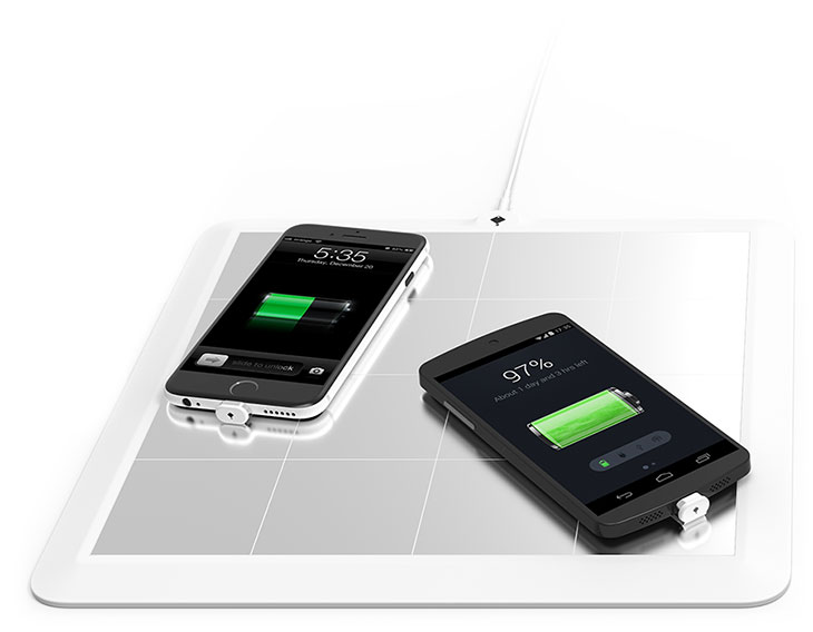 Pour une charge par conduction, il suffit d'avoir 2 points de contact avec le pad Energysquare, par le biais d'un produit déjà équipé ou d'une coque spéciale sur votre smartphone. Le téléphone se charge ensuite automatiquement, l'avantage du pad est que vous pouvez mettre plusieurs appareils en même temps.