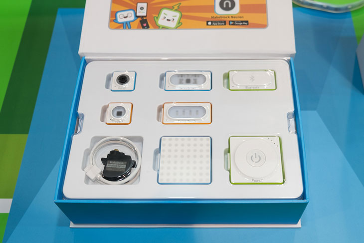 Neuron est une plateforme électronique programmable d'assemblage par blocs destinée aux enfants. Makeblock, la société qui a développé le produit a même remporté un prix de l'innovation pendant le CES 2018 dans la catégorie « Technologies pour un monde meilleur ».