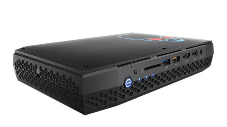 Ses dimensions (22,1 x 14,9 x 3,9 cm) ne l'empêchent pas d'intégrer une sortie audio/optique, un lecteur de carte SD, 6 prises USB 3.0, 3 USB Type-C dont 2 compatibles Thunderbolt 3 (pour connecter des cartes graphiques externes) et 4 sorties vidéos (dont 2 HDMI)
