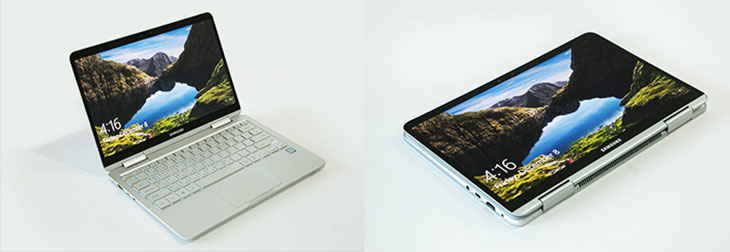 Le Notebook 9 Pen arbore un design très sobre fait de métal et de magnésium. Son écran multitouch s'ouvre à 360° pour se transformer en tablette de 13 pouces Full HD. D'ailleurs, son poids plume, 995 grammes, est un véritable confort pour une utilisation en mode tablette.