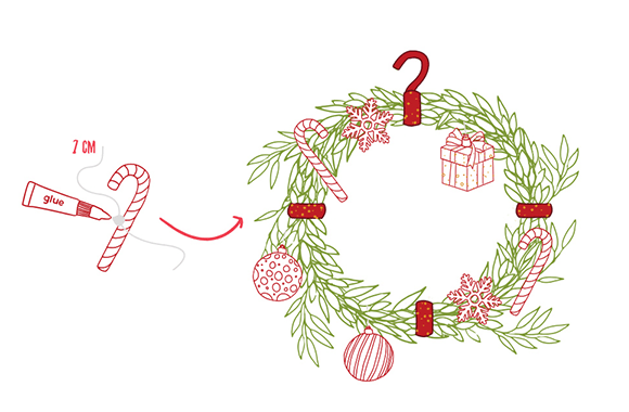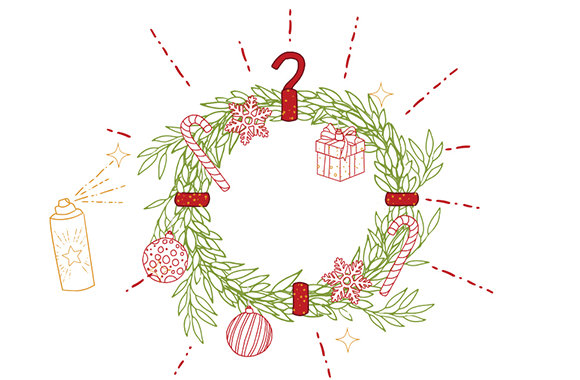 Mon astuce : pensez à recycler vos décorations du sapin de Noël de l'an dernier ! Toutes les boules et figurines à l'accroche cassée trouveront une seconde vie sur la couronne.