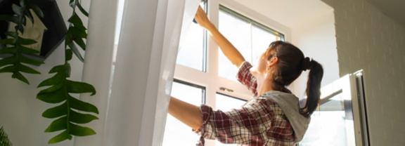 - Vitres et baies vitrées : pour une vue impeccable sur votre extérieur, un bon lavage avec un produit adapté s’impose pour éliminer toute trace d’odeur, d’humidité et de résidus accumulés durant l’hiver !