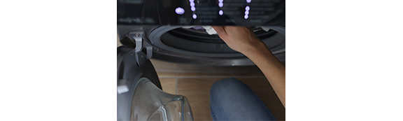 Vérifiez la présence de petits objets qui auraient pu s'y glisser. Pour cela, inspectez entre les joints autour du tambour délicatement avec un chiffon doux ou une brosse à dent.