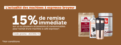 *Bénéficiez de 15% de remise immédiate dans la limite de 50€ de remise sur un ou plusieurs accessoires et consommables au moment de l'achat d'une machine à Expresso broyeur*. Offre valable en magasin et sur Boulanger.com sur les catégories suivantes: Accessoires et consommables machine à café: café, tasses, mugs bouteilles isothermes, kits d'entretien et détartrant pour machine expresso. Offre non cumulable avec d'autres promotions en cours. Hors produits de marque Delonghi et Jura.Hors produits reconditionnés et produits vendus par la place de marché. Hors éco participation.Le prix affiché ne tient pas compte de la remise. Remise effectuée lors de votre passage en caisse ou à la mise au panier sur http://boulanger.com avec le code ACCESS-15.