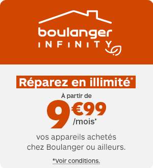 * Garantie 2 ans = Indépendamment de la garantie commerciale Boulanger, vous bénéficiez des garanties légales. Voir conditions à l'entrée de votre magasin.