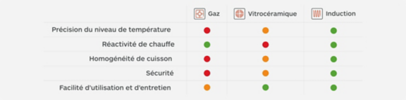 - Le rendement de l’électrique (surtout l’induction) est de 80 à 90 %