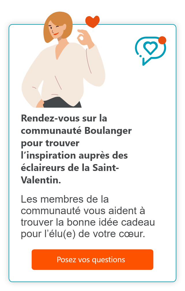 La fête de l'amour approche à grands pas, et chez Boulanger, nous sommes prêts à rendre votre Saint-Valentin encore plus spéciale. Cette année, du 30 janvier au 14 février 2024 nous vous avons préparé une opération commerciale exceptionnelle tant en magasin que sur notre site web, avec des offres irrésistibles pour vous aider à choisir le cadeau parfait pour votre être cher.