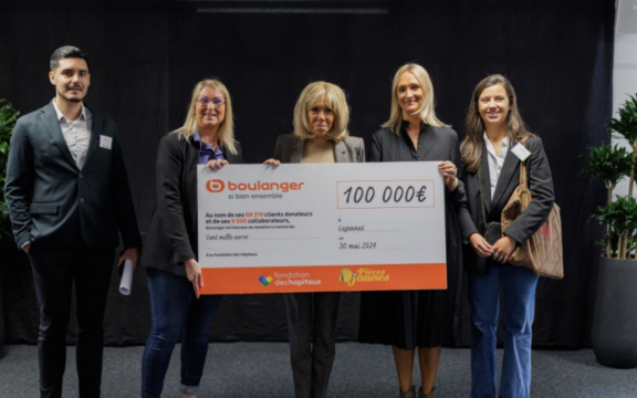 Cette année, Boulanger a eu l’honneur de participer à une belle initiative solidaire en soutenant l’association des Pièces Jaunes. En collaboration avec nos clients, nous avons réussi à récolter 100 000€. Ce don a été remis lors d’une rencontre avec Brigitte Macron, marquant un moment fort de solidarité et d’engagement.
