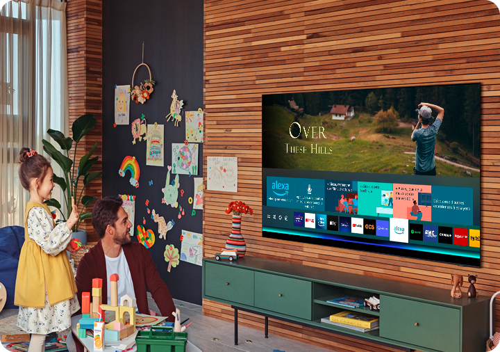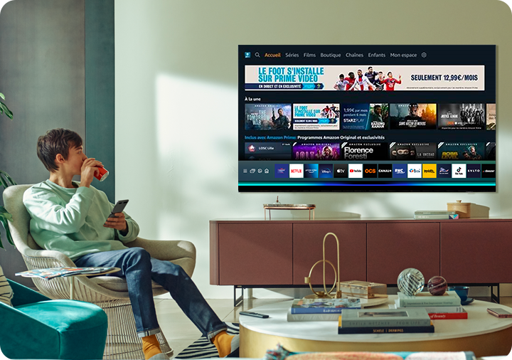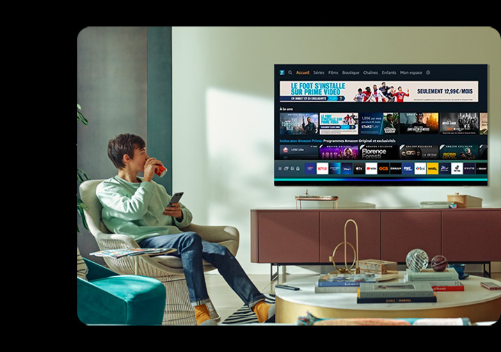 - Les images sont simulées et à des fins d'illustration uniquement. Certaines applications disponibles sur les Smart TV Samsung sont éditées par des tiers et sont susceptibles d'être soumises à un abonnement payant et de changer, d'évoluer ou d'être arrêtées selon les choix et décisions de leurs éditeurs respectifs.