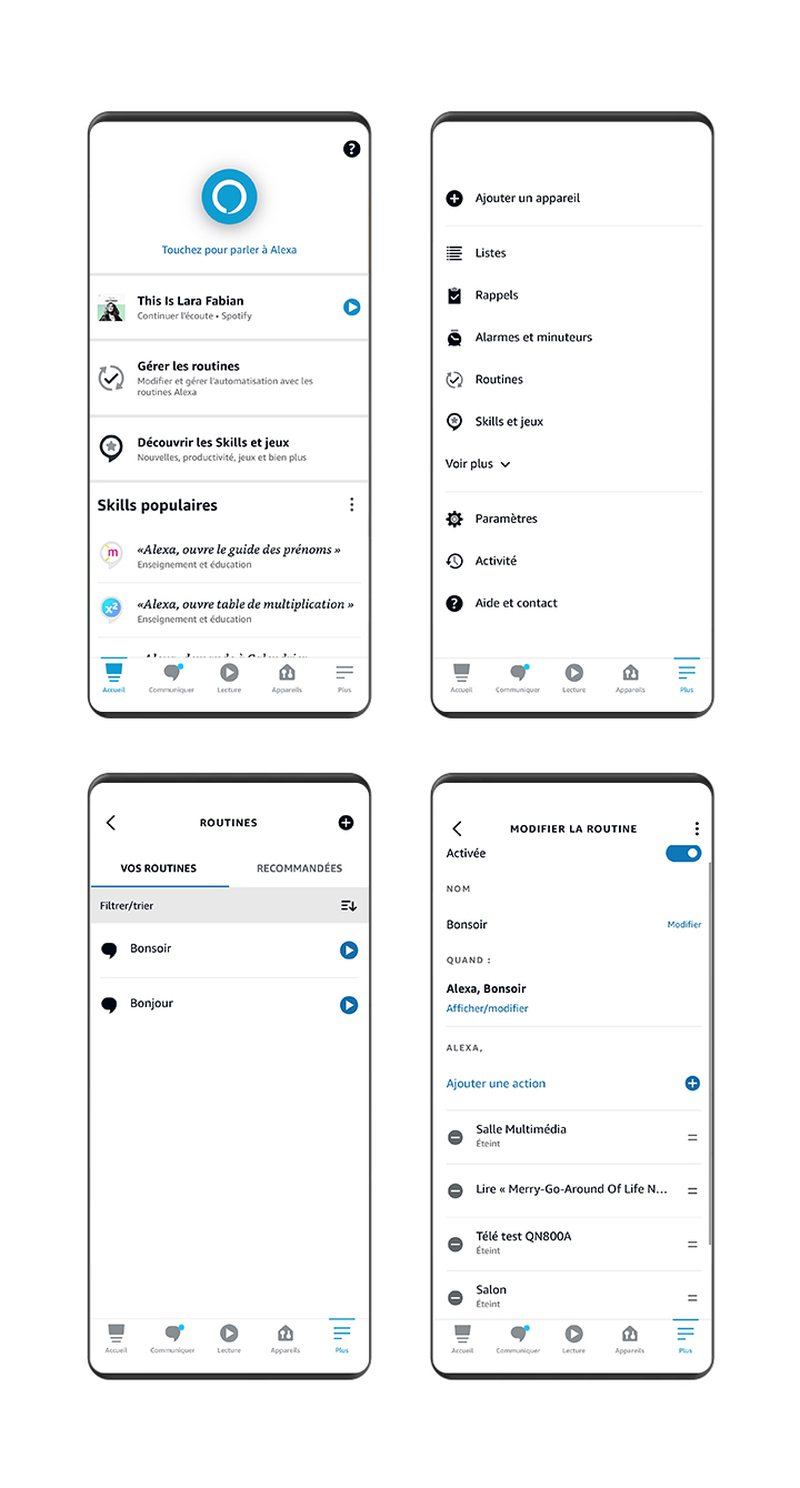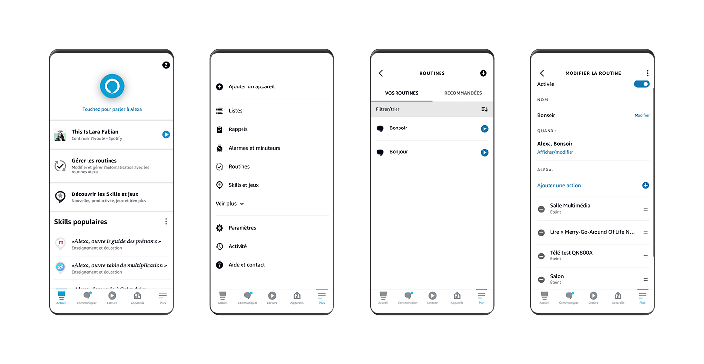 Grâce à l'application Alexa, configurez des skills ou des routines.
