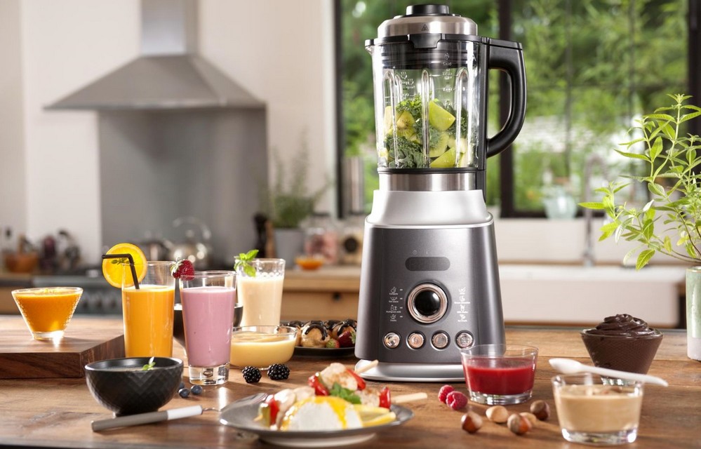 Découvrez le blenderC’est le plus polyvalent des blenders. Grâce à ses lames qui tournent à très haute vitesse, il peut réaliser n’importe quelle recette, des sorbets aux soupes et même des laits végétaux. La vitesse de rotation des lames assure le mixage parfait des ingrédients, ce qui garantit des préparations lisses et homogènes. De plus, grâce à la vitesse de rotation, les aliments sont chauffés naturellement, sans recourir à un élément chauffant : cuits à moins haute température, ils conservent ainsi tous leurs bienfaits.