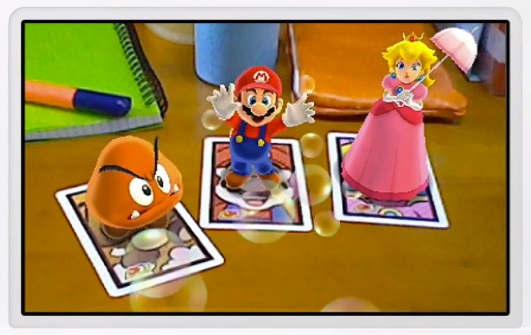 Grâce à ses capteurs photo et à ses cartes RA (pour "Réalité Augmentée") incluses, ces deux modèles de 3DS sont capables de proposer des jeux en réalité augmentée. Cette technologie permet d'insérer des objets ou personnages numériques dans un environnement réel. Concrètement, il suffit de poser une carte RA Mario sur votre table et viser cette dernière avec la 3DS pour voir le personnage emblématique de Nintendo émerger de cette dernière et se promener ! Vous pouvez également ajouter ses petits camarades et vous prendre en photo avec vos mascottes favorites !