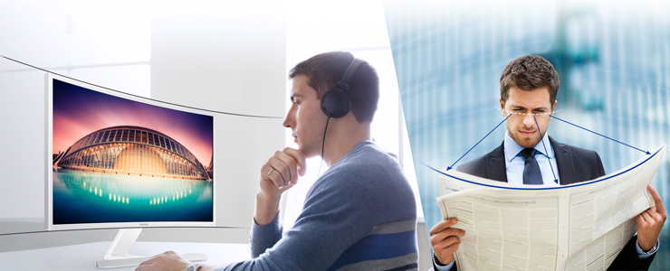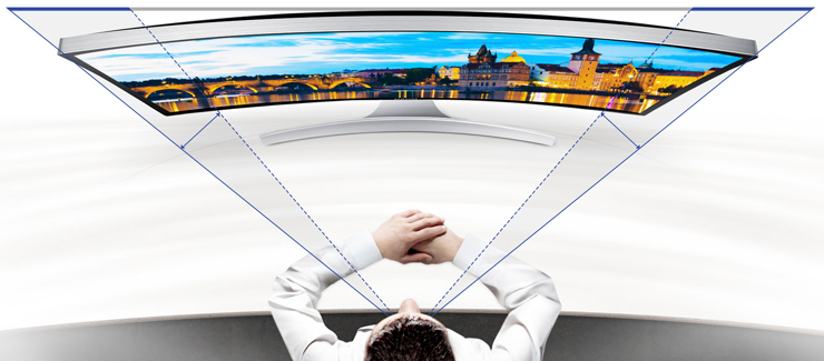 Grâce à un écran de forme incurvé, vos yeux sont toujours à la même distance de votre écran sans tourner votre tête. Encore un point pour le confort visuel !