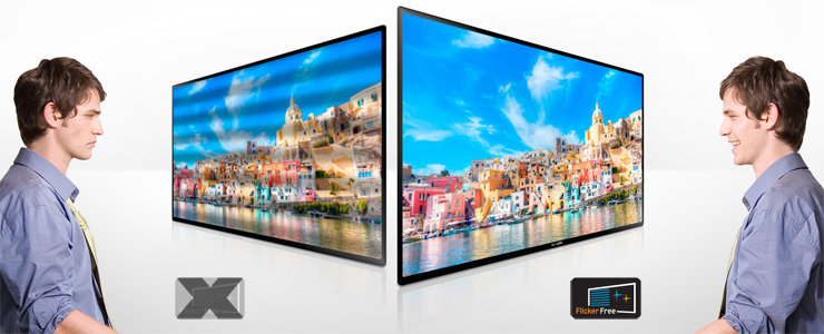 Le Flicker est un phénomène de scintillement de l'image, il donne l'impression que l'écran "clignote" très rapidement en laissant apparaître des bandes noires montantes ou descendantes. La technologie Flicker Free permet de réduire et même de supprimer totalement ce phénomène.