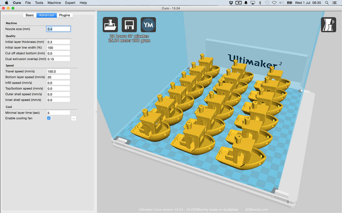 Ce logiciel prend en compte la précision de l'imprimante, le type de matériau utilisé, la température, la vitesse d'impression.