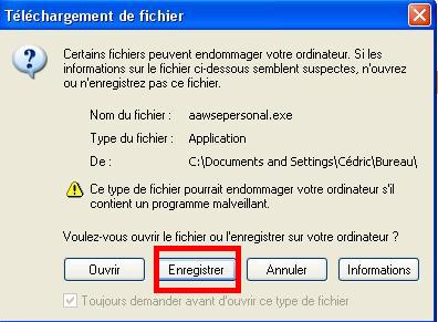 Cliquez sur le bouton enregistrer, ceci fera apparaître une nouvelle fenêtre :