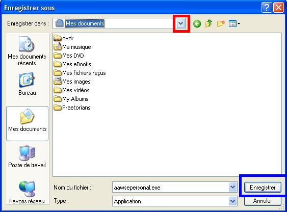 Sur cette fenêtre, veillez à bien avoir le nom de "Mes documents" dans la zone "Enregistrer dans" se trouvant en haut de la fenêtre.
