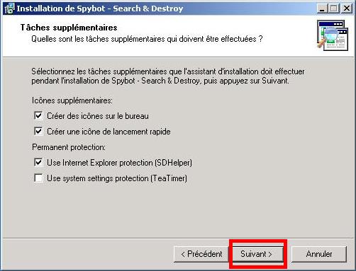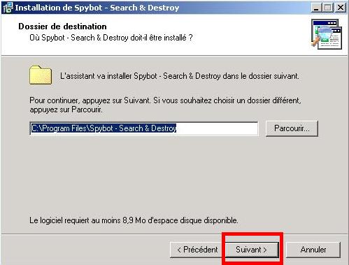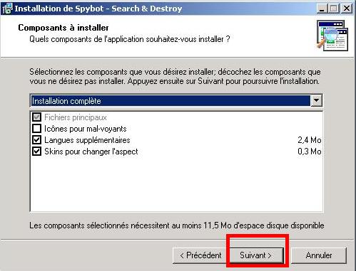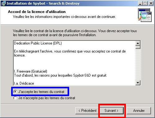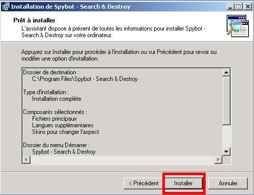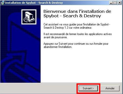 Cliquez ici pour télécharger le logiciel Spybot, et faire afficher la fenêtre suivante :