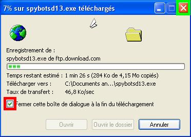 Si la case "Fermer cette boîte de dialogue à la fin du téléchargement" est cochée, la fenêtre se refermera automatiquement