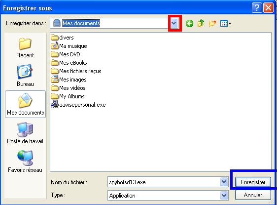Sur cette fenêtre, veillez à bien avoir le nom de mes documents dans la zone "Enregistrer dans" se trouvant en haut de la fenêtre.