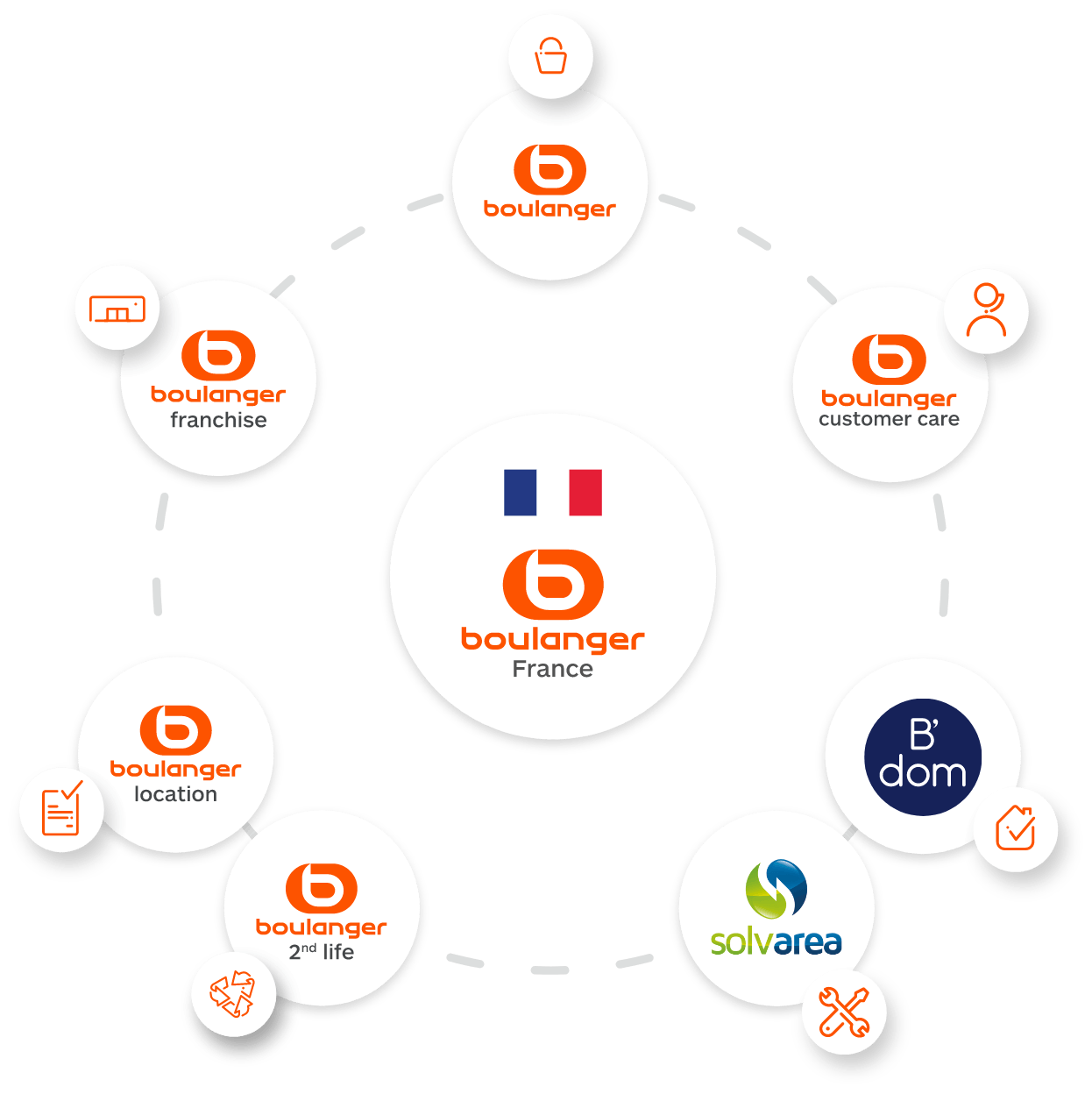 Le groupe rassemble plusieurs enseignes : Boulanger, Electro Dépôt, Hifi International, Krëfel, Reconomia, Re!commerce et Environnement Recycling.