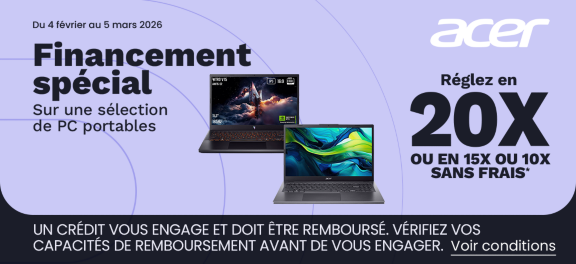Vous cherchez un ordinateur ou un autre produit de la marque Acer ? Retrouvez la très large gamme de PC fabriqués par ce constructeur taïwanais historique sur le marché de l'informatique (1976), de l’ordinateur de bureau aux PC portables, en passant par les modèles hybrides 2 en 1 (se transformant très facilement en tablettes) ou encore les tout-en-un (permettant de gagner de la place).