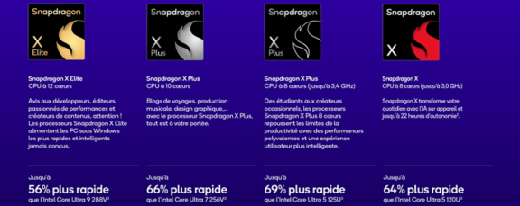 Vous hésitez à vous procurer un appareil équipé d’un processeur Snapdragon ? Si vous cherchez de la puissance et de la performance, n’hésitez plus ! Connu pour équiper de puissants smartphones Android, Snapdragon est devenu une référence en matière de processeurs d’ordinateurs portables avec notamment sa gamme de puces Snapdragon X Elite. Et les performances graphiques des GPU Qualcomm Adreno sont également exceptionnelles. Les différents constructeurs ne s’y sont d’ailleurs pas trompé, faisant rapidement confiance à Qualcomm pour équiper plusieurs de leurs nouvelles machines. Vous avez ainsi le choix sur cette page entre de nombreux modèles de PC hybrides et ordinateurs portables, avec différentes tailles d’écran, stockage et mémoire vive.