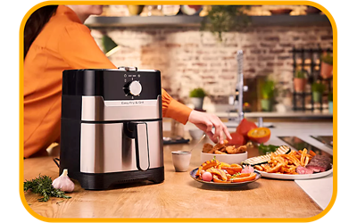 Par exemple, vous pourrez vous lancer en toute décontraction dans la préparation de noix de Saint-Jacques aux agrumes ou même d’un rôti végétarien ! L’Airfryer se décline en plusieurs tailles : le plus compact 1 à 2L parfait pour les petites cuisines jusqu’au format 5L, idéal pour les cuisines festives, lequel peut contenir une volaille ! Et bien sûr, chez Boulanger, nous sommes toujours là afin de vous aider à faire le bon choix.