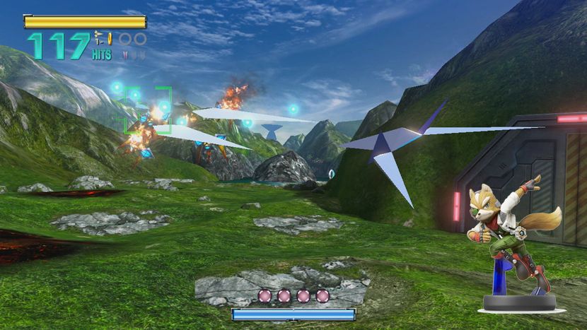 En plaçant l'amiibo Fox McCloud et l'amiibo Fox Lombardi sur le lecteur NFC de votre gamepad, vous profitez de contenu exclusif tel que l'Arwing original de la version Super Nes.