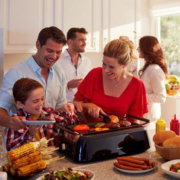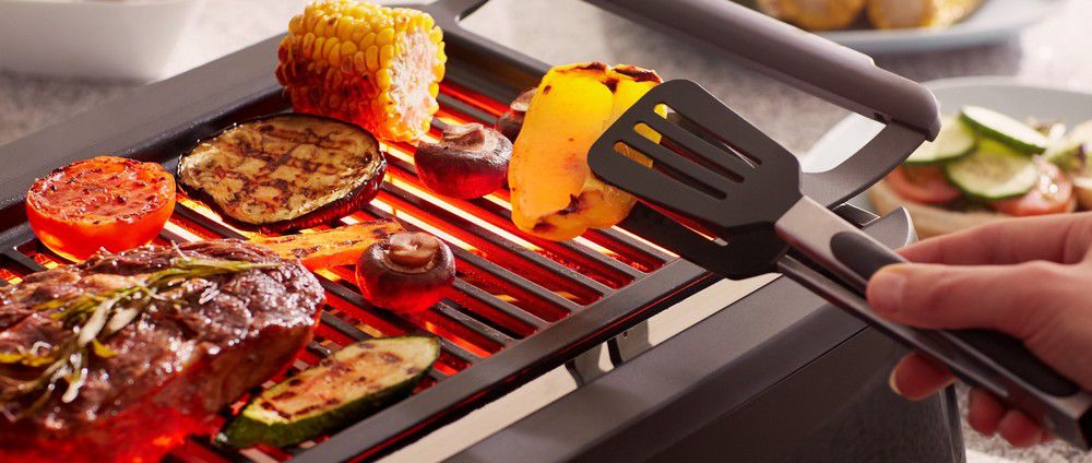 La technologie infrarouge sophistiquée vous permet de savourer des grillades parfaitement dorées. Des réflecteurs spéciaux dirigent la chaleur vers la grille de cuisson afin d'obtenir des résultats uniformes. Durant la cuisson, les graisses tombent dans le bac récupérateur dont la température est suffisamment basse pour réduire les fumées et les éclaboussures. Déguster de délicieuses brochettes de poulet grillées n'a jamais été aussi agréable même en intérieur.
