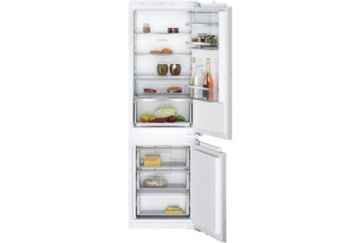 Le réfrigérateur combiné encastrable NEFF KI7867FE0 N50, avec ses dimensions de 177.2 x 54.1 cm, est conçu pour s'intégrer parfaitement dans votre cuisine tout en offrant une capacité de stockage impressionnante de 260 litres. Grâce à la technologie No Frost, dites adieu au dégivrage manuel : l'air sec empêche la formation de givre, garantissant ainsi une conservation optimale de vos aliments. Le compartiment Fresh Safe 1 <0°C> est un véritable atout pour maintenir vos fruits et légumes croquants et frais plus longtemps, tandis que l'Eco Air Flow assure une température constante à tous les niveaux du réfrigérateur. La fonction Super-congélation est idéale pour préserver les qualités nutritionnelles de vos aliments en abaissant temporairement la température, facilitant ainsi l'intégration de nouveaux produits dans le congélateur.