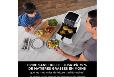 La NINJA AF180EUWH est équipée de la technologie Max Crisp, permettant de cuire et de croustiller vos aliments, même encore congelés, en un temps record. Avec une température pouvant atteindre jusqu'à 240°C, cette friteuse sans huile assure une cuisson optimale et rapide, 50 % plus rapide qu'un four à convection standard. De plus, elle permet de réduire jusqu'à 75 % de matières grasses par rapport à une friture traditionnelle, pour des plats plus sains sans compromis sur le goût et la texture.