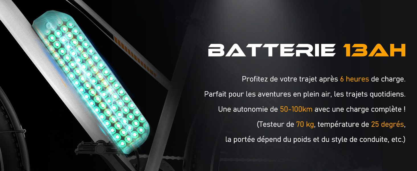 • Autonomie : Jusqu'à 50 km - Puissance de la batterie : 468 Wh