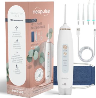 Le jet dentaire NEOPULSE® MY FIRST est un hydropulseur ultra-compact et polyvalent, conçu pour accompagner toute la famille : enfants dès 6 ans, adolescents, adultes novices ou voyageurs cherchant une solution portable d’hygiène interdentaire.