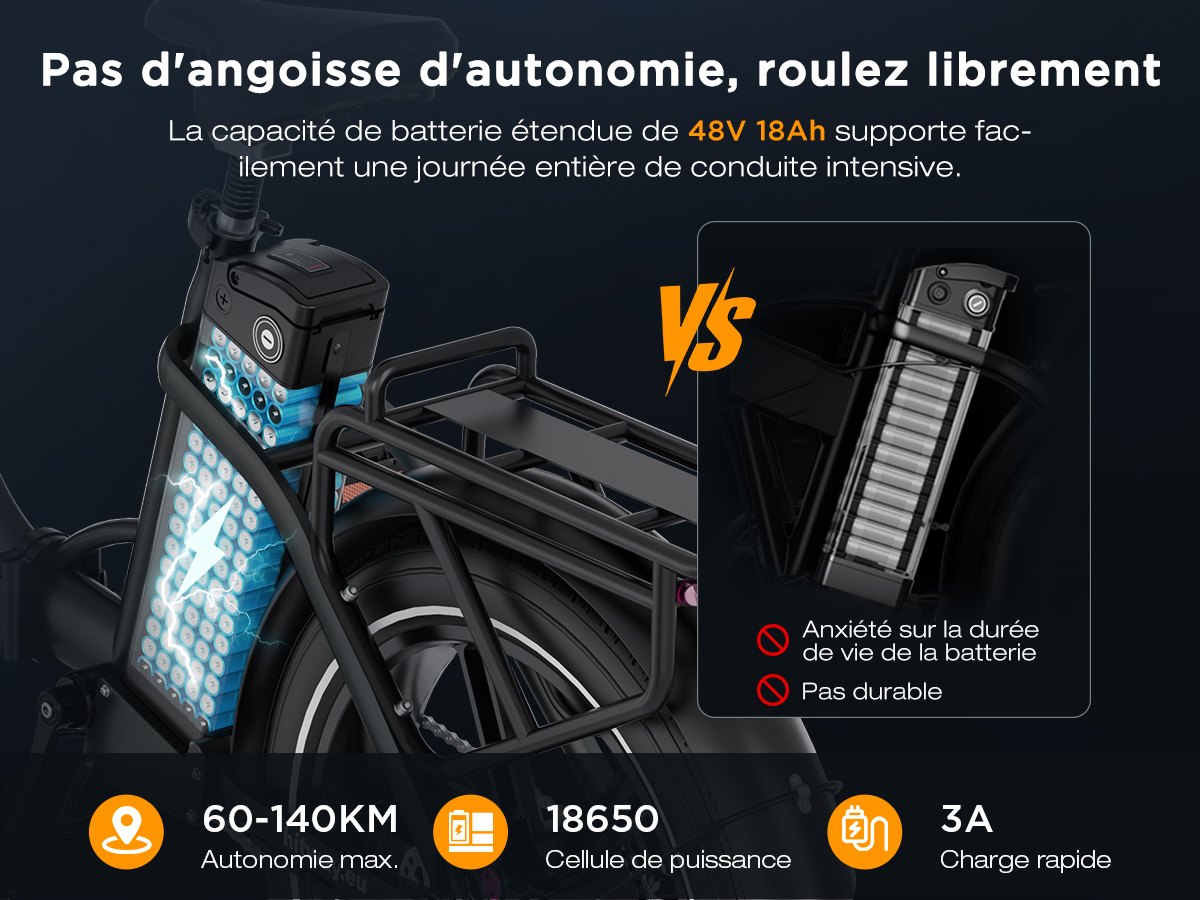 - Batterie : Lithium 48V 18Ah(864Wh)