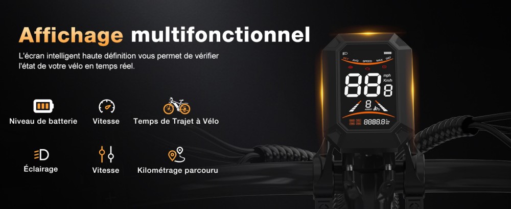 BK15 adopte un matériau léger - acier de construction au carbone, pesant seulement 25,4 kg. Équipé d'un écran LCD multifonction, il peut afficher la vitesse de conduite, la batterie restante, le kilométrage, etc. Équipé d'engrenages professionnels Shimano à 7 vitesses, le contrôle est plus précis et sensible. Idéal pour les déplacements et l'entraînement.