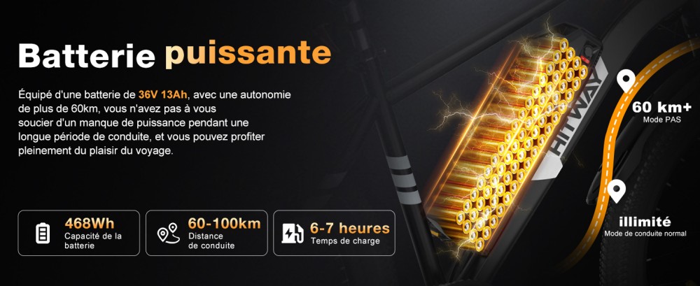 - Autonomie: 60KM-100KM(Tester en mode vitesse non uniforme avec une charge de 75KG, l’autonomie réel varie en fonction du poids, de la température, de l’état de la route et du comportement de l’utilisateur, etc. Attention:L’autonomie 90 km max est un chiffre idéale en mode manuel.)